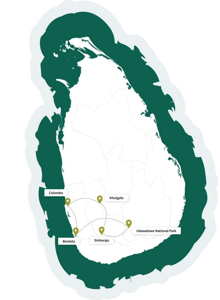 Depart early for Sinharaja Rainforest, a UNESCO World Heritage site and one of Sri Lanka’s last remaining lowland rainforests. Optionally stop en route at scenic viewpoints or tea estates. Participate in a guided rainforest trek, observing endemic flora and fauna, waterfalls, and streams. Overnight in an eco-glamping lodge.